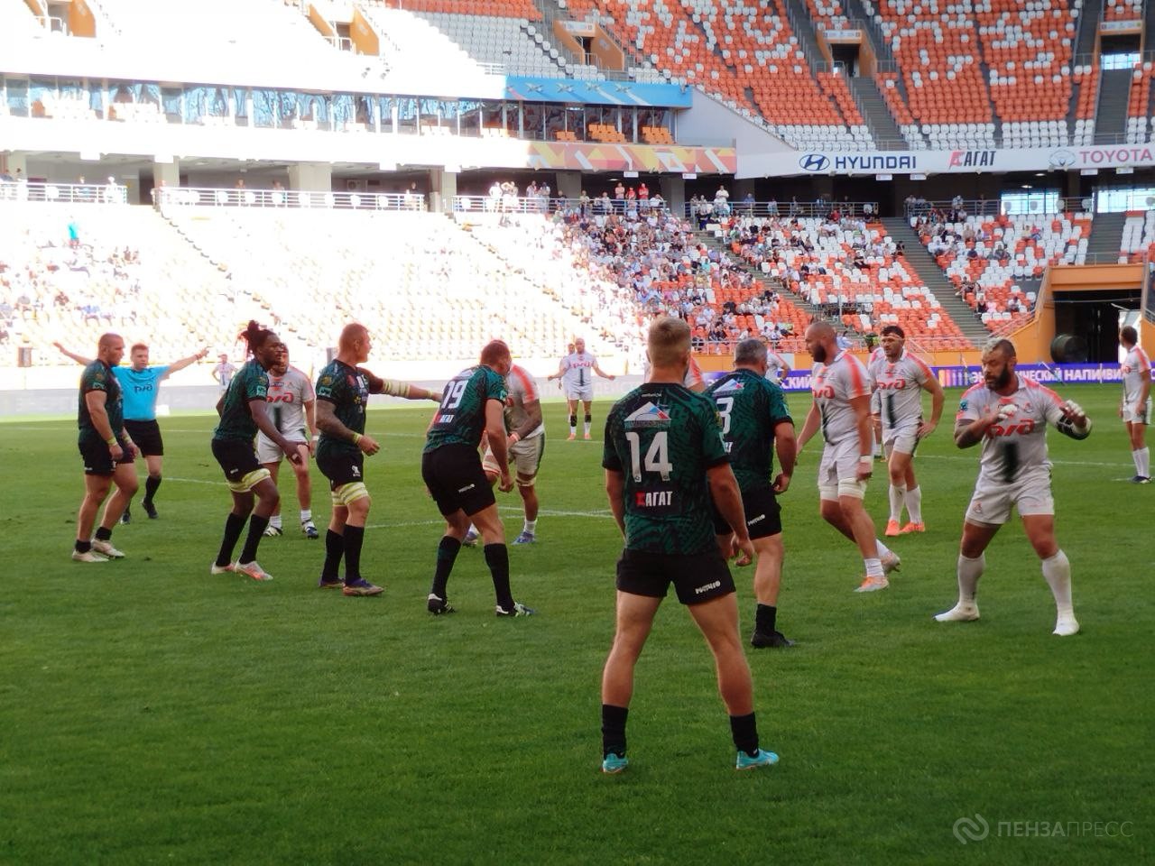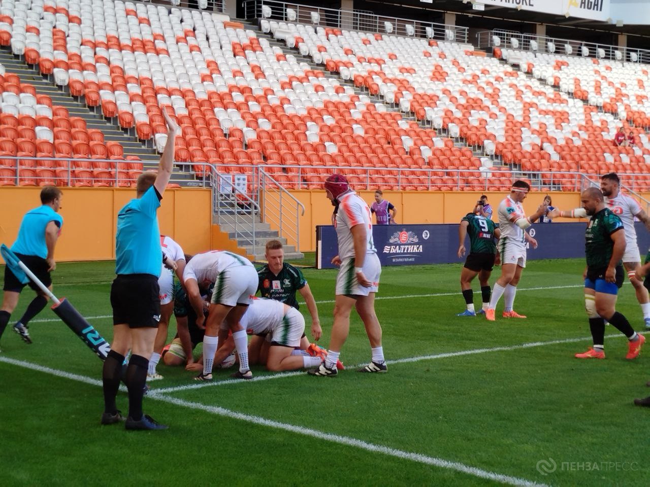 На первых минутах игрок железнодорожников Тиаан ван дер Мерве в итоге атаки молом занес попытку в зачетку соперника, а Сергей Янюшкин осуществил реализацию. 7:0 в пользу пензенцев.