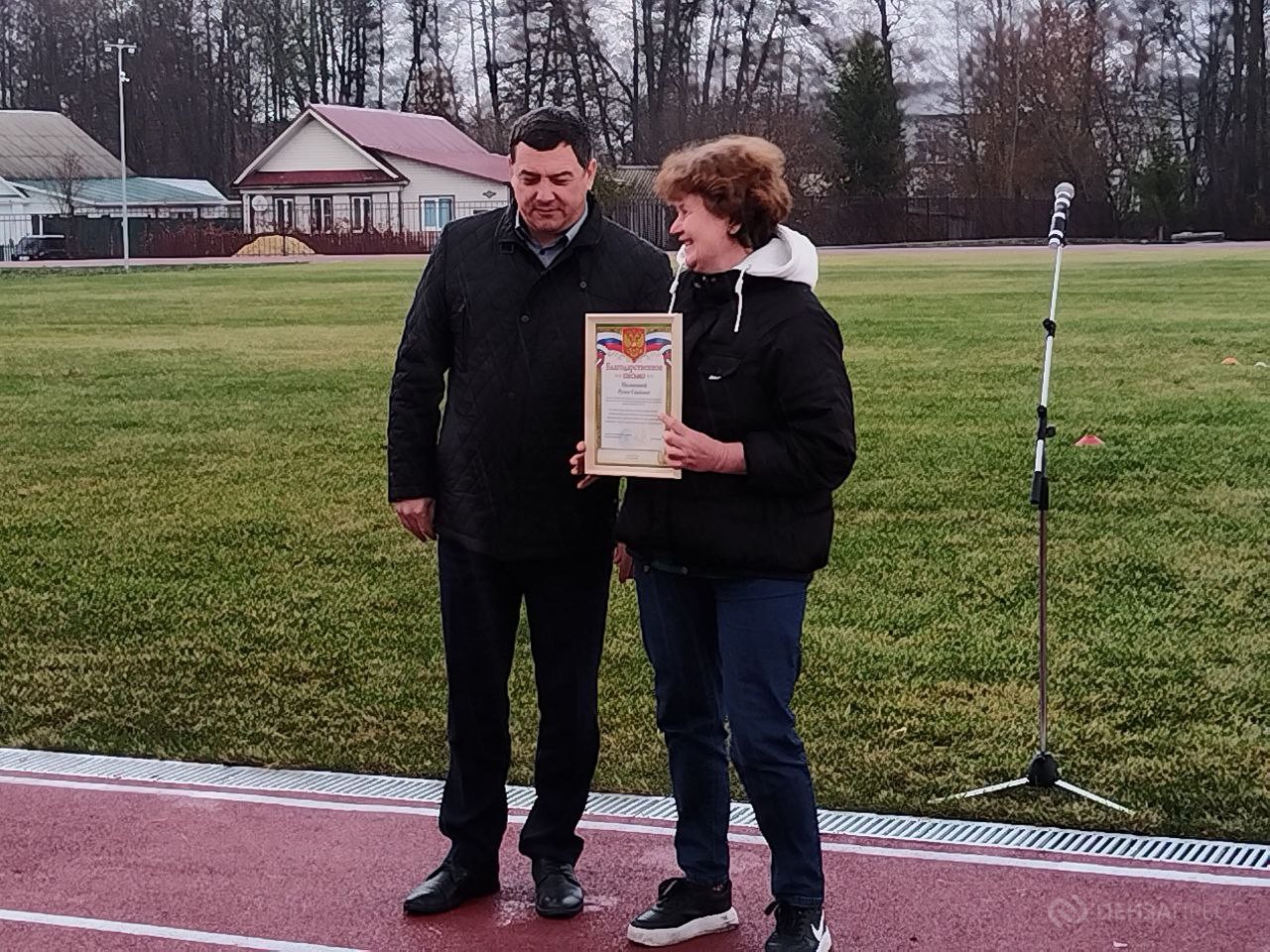 Рабочим и строителям, которые проводили капитальный ремонт детской спортшколы и стадиона «Труд», вручили благодарственные письма.